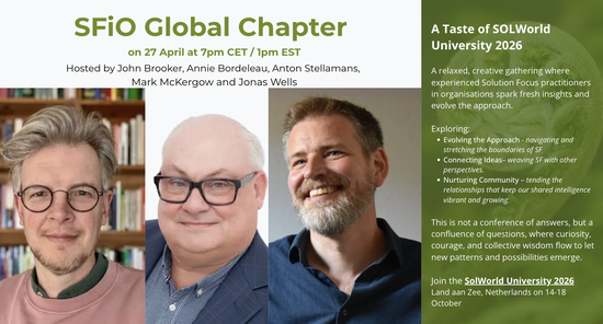SFiO is an international network of solution-focused practitioners which promotes, supports and develops research and applications of Solution Focus in Organisations.
